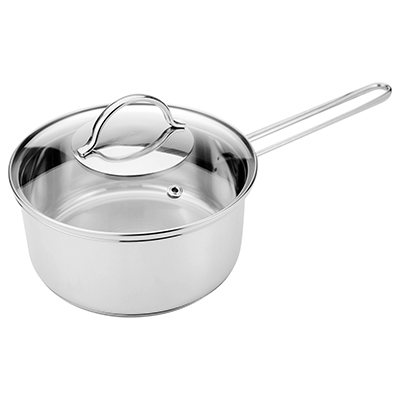 Ковш из нержавеющей стали "Pretty" 1л, д14см, h6,5см, стеклянная крышка, двойное капсулированное дно, прутковые ручки, подарочная коробка, Appetite (Китай) (арт. 069327)