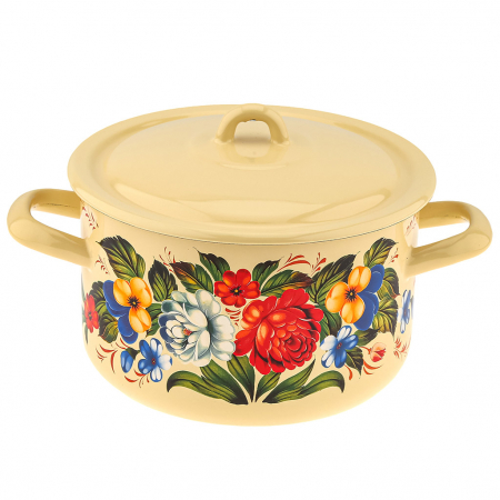 "Татьяна" Кастрюля эмалированная 2,9л, форма цилиндрическая, металлическая крышка (Россия) (арт. 106998)
