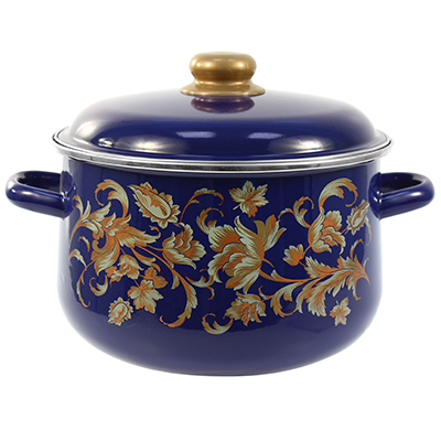 "Драгоценная" Кастрюля эмалированная 5,5л, д25см, h15,5см, коническая форма, металлическая крышка с пластмассовой ручкой-кнопкой, ободок из нержавеющей стали, синий (Россия) (арт. 083546)