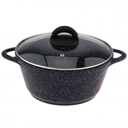 Кастрюля с антипригарным покрытием 3л, д24см "Сияние Blue", h11,5см, s0,4см, литые ручки, стеклянная крышка с пароотводом, форма "Классик волна", подарочная упаковка (Россия) (арт. 106094)