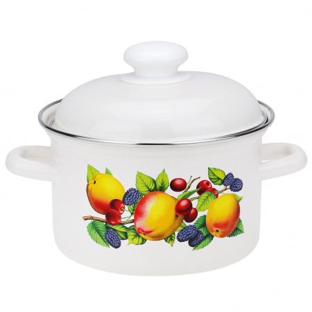 "Яблоки" Кастрюля эмалированная 2,0л, форма цилиндрическая, металлическая крышка (Россия) (арт. 004801)
