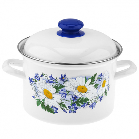 "Ромашковое поле" Кастрюля эмалированная 2л, форма цилиндрическая, металлическая крышка (Россия) (арт. 105833)