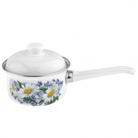 "Ромашковое поле" Кастрюля эмалированная 1л, форма цилиндрическая, металлическая крышка (Россия) (арт. 105857)