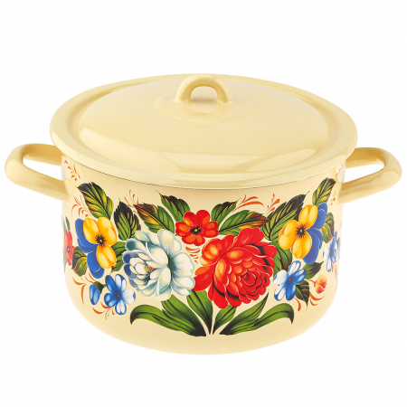 "Татьяна" Кастрюля эмалированная 4,3л, форма цилиндрическая, металлическая крышка (Россия) (арт. 105936)