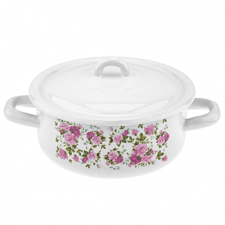 "Ктайская роза" Кастрюля эмалированная 1,45л, форма цилиндрическая, металлическая крышка (Россия) (арт. 104448)