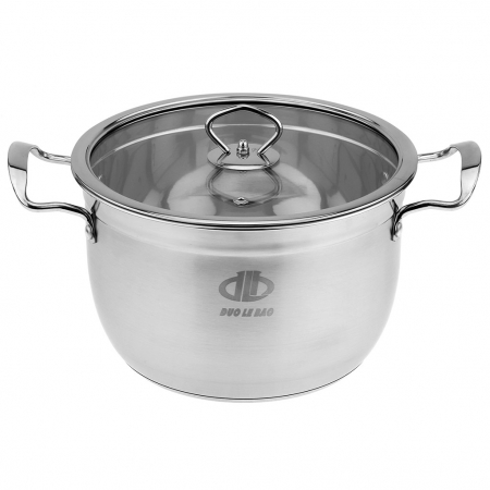 Кастрюля из нержавеющей стали "Аксай" 4,8л, д23,5см h14,4см, s0,45мм, матовая полировка, стеклянная крышка, металлические ручки, с теплораспределительным дном 0,5см, цветная коробка (Китай) (арт. 102130)