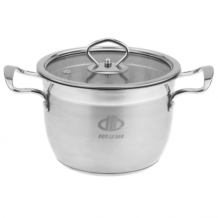 Кастрюля из нержавеющей стали "Аксай" 2,1л, д17,7см h11,7см, s0,35мм, матовая полировка, стеклянная крышка, металлические ручки, с теплораспределительным дном 0,5см, цветная коробка (Китай) (арт. 102125)