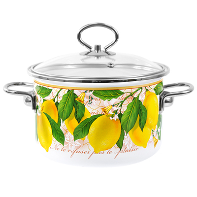 "Limon" Кастрюля эмалированная 3л, д18см, h18,8см, цилиндрическая форма, стеклянная крышка, белый (Россия) (арт. 083659)