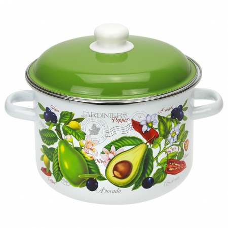 "Авокадо" Кастрюля эмалированная 4л, д22см, h13см, цилиндрическая форма, металлическая крышка, белый (Россия) (арт. 057232)