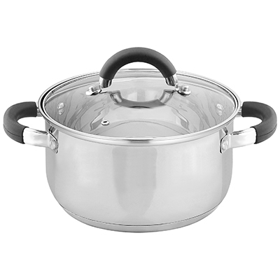 Кастрюля из нержавеющей стали "Sofia" 3,3л, д21см, h11см, стеклянная крышка, серые силиконовые ручки, мерная шкала, тройное капсулированное дно, подарочная коробка, Appetite (Китай) (арт. 085349)