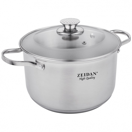 "Zeidan" Кастрюля из нержавеющей стали 6,6л, д24см, 5-и степовое капсулированное дно, стеклянная крышка с матовой тонировкой, внутренняя - зеркальная полировка, снаружи - матовая полировка, подарочная упаковка (Китай) Подходит для всех видов плит, вк (арт. 004541)