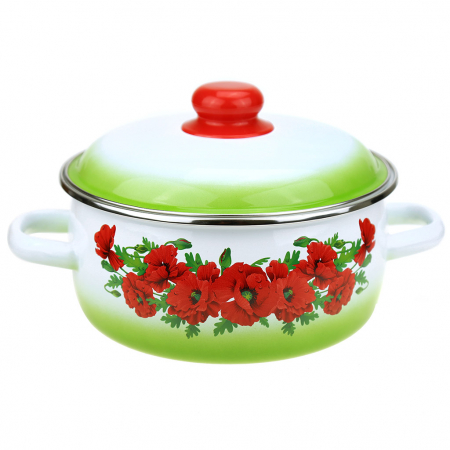 "Восточный мак" Кастрюля эмалированная 3л, д20см, h12,5см, сферическая форма, металлическая крышка, ободок из нержавеющей стали, белый (Россия) (арт. 038090)