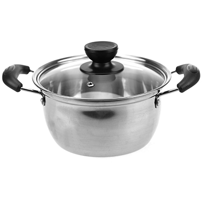 "Золушка" Кастрюля из нержавеющей стали 1,5л, д18см, h9см, стеклянная крышка, бакелитовые ручки, без теплораспределительного дна, цветная коробка (Китай) (арт. 014082)
