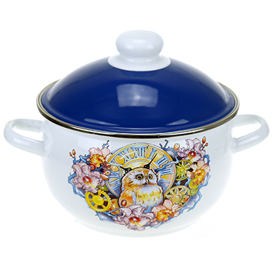 "Фэнтези" Кастрюля эмалированная 3л, д18см, форма шар, металлическая крышка, белый (Россия) (арт. 011453)