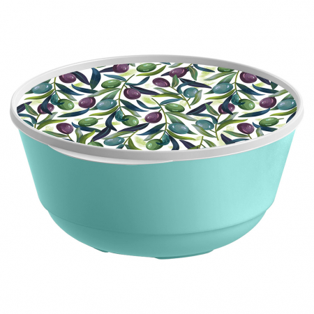 Миска пластмассовая "Bergamo" 3л, д23см, h11,5см, зеленый, с крышкой, с декором (Россия) (арт. 004835)