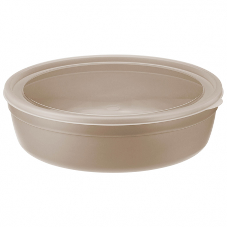 Миска пластмассовая 2,8л, д25,5см, h7,5см, с крышкой, капучино (Россия) (арт. 043585)