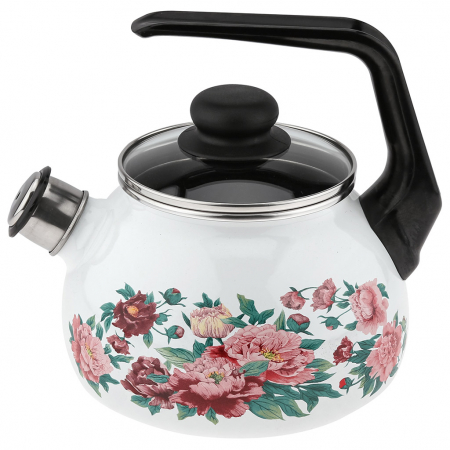 "Армель" Чайник эмалированный 2л, д19см, h13см, со свистком, сферическая форма, стеклянная крышка, белый (Россия) (арт. 057227)