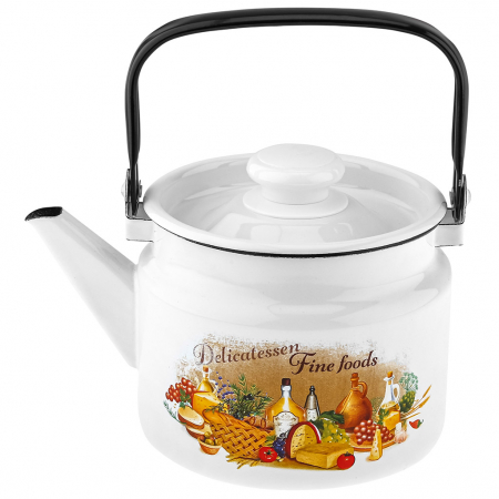 "Италия" Чайник эмалированный 2л, д16см, h13см, металлическая крышка с пластмассовой ручкой-кнопкой, металлическая подвижная ручка (Россия) (арт. 105968)