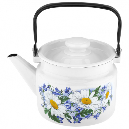 "Ромашковое поле" Чайник эмалированный 2л, д16см, h13см, металлическая крышка с пластмассовой ручкой-кнопкой, металлическая подвижная ручка (Россия) (арт. 105967)