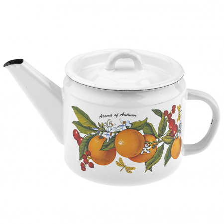 "Фруктовая фантазия" Чайник эмалированный 1л, д12см, h10,2см, металлическая крышка, металлическая фиксированная ручка (Россия) (арт. 104464)