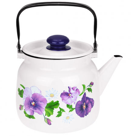 "Анютины глазки" Чайник эмалированный 3,5л, д19,4см, h16,2см, s0,08мм, двойной слой эмалевого покрытия, металлическая крышка, металлическая подвижная ручка (Россия) (арт. 005985)
