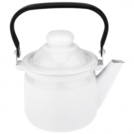 Чайник эмалированный 1,0л д12см h11см, металлическая крышка, подвижная металлическая ручка, белый (Россия) (арт. 064694)
