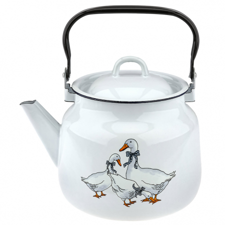 "Гуси" Чайник эмалированный 3,5л, металлическая крышка, подвижная металлическая ручка, белый (Россия) (арт. 103090)