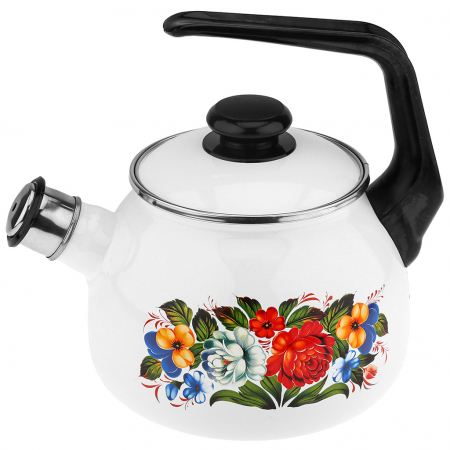 "Татьяна" Чайник эмалированный 2,5л, со свистком, сферическая форма, металлическая крышка (Россия) (арт. 077478)