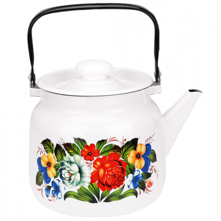 "Татьяна" Чайник эмалированный 3,5л, д19,4см, h16,2см, s0,08мм, двойной слой эмалевого покрытия, металлическая крышка, металлическая подвижная ручка (Россия) (арт. 005984)