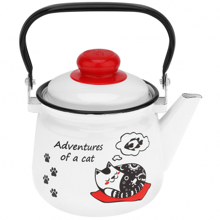 "Коты" Чайник эмалированный 1,5л, металлическая крышка, подвижная металлическая ручка, белый (Россия) (арт. 008910)
