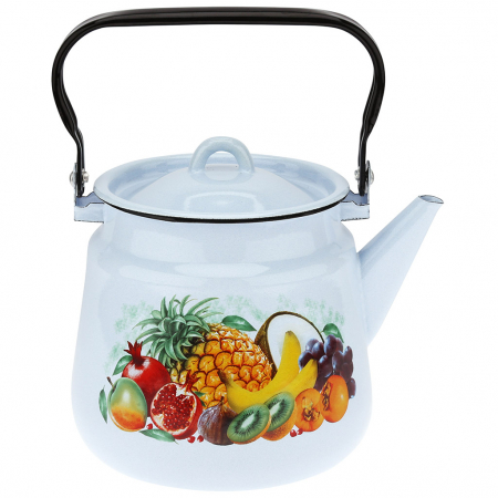 "Экзотика" Чайник эмалированный 3,5л, д19см, h18см, металлическая крышка, серо-голубой (Россия) (арт. 008792)