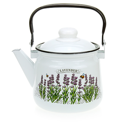 "Лаванда-Г" Чайник эмалированный 2,5л, металлическая крышка с пластмассовой ручкой-кнопкой, подвижная металлическая ручка, белый (Россия) (арт. 093087)
