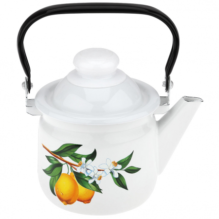 "Лимоны" Чайник эмалированный 1,0л д12см h11см, металлическая крышка, подвижная металлическая ручка, белый (Россия) (арт. 064737)