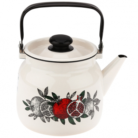 "Цвет граната" Чайник эмалированный 3,5л, 3,5л, д19,4см, h16,2см, s0,08мм, двойной слой эмалевого покрытия, металлическая крышка с пластмассовой ручкой-кнопкой, металлическая подвижная ручка (Россия) (арт. 066329)