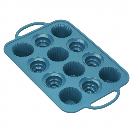 "Лагуна" Форма силиконовая для выпекания "Кекс - 12 штук" 37,3х23см h3,7см, с металлическим каркасом, с ручками, цвет - темно-бирюзовый (Китай) (арт. 051800)
