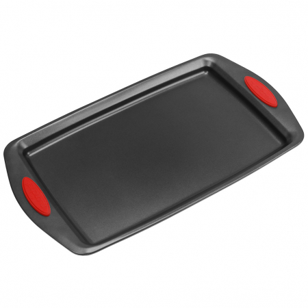 Противень с антипригарным покрытием 42х25см "Дебют", h2,2см, с силиконовыми накладками, цвет - графит (Китай) (арт. 051686)
