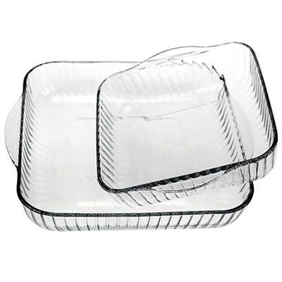 "Боркам (Borcam)" Форма стеклянная жаропрочная набор 2шт: 1,95л - 22х25х6см, 3,5л - 32х28х6см, прямоугольная, волнистый борт, цветной картон, Pasabahce (Турция) (арт. 018392)