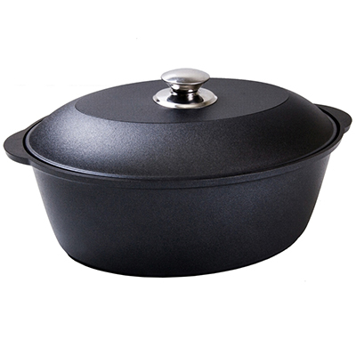 Простая, удобная посуда с нестареющим дизайном. основание из литого алюминия толщиной от 4,5 до 6 мм; экологически безопасная; надежная и долговечная, изделия не подвергаются деформации в процессе эксплуатации; быстрое и равномерное распределение тепла, длительное сохранение тепла; удобная для жарки мяса, запекания, тушения овощей; еда в такой посуде не пригорает, а томится, как в русской печи;