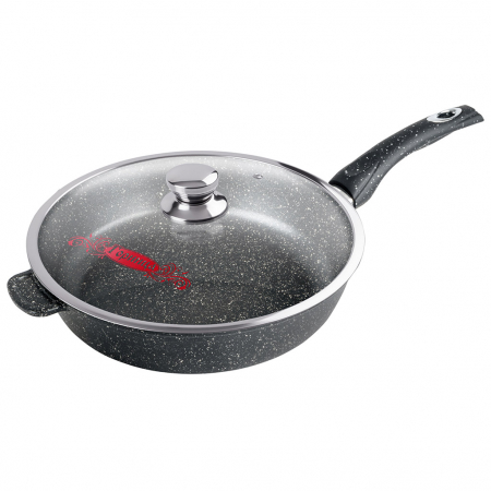 Сковорода с тефлоновым покрытием д30см "Гранит", h7,5см, s0,42см, ручка из термостойкого пластика, стеклянная крышка, подарочная упаковка (Россия) (арт. 001813)