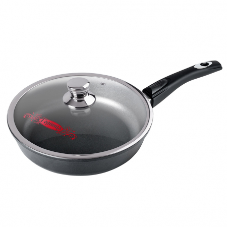 Сковорода с тефлоновым покрытием д24см "Классик", h6,5см, s0,4см, съемная ручка из термостойкого пластика, стеклянная крышка с пароотводом, подарочная упаковка (Россия) (арт. 056623)