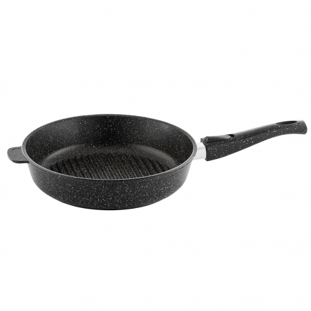 Сковорода-гриль с тефлоновым покрытием д28см "Гранит", h7см, s0,4см, съемная ручка из термостойкого пластика (Россия) (арт. 056733)