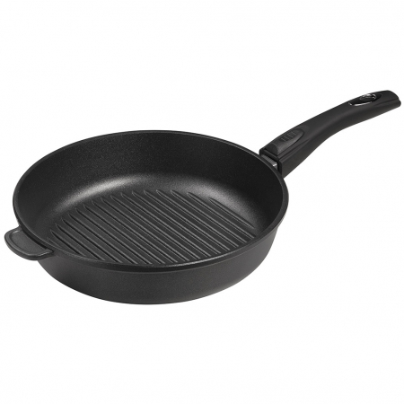 Сковорода-гриль с тефлоновым покрытием д28см "Классик", h7см, s0,4см, съемная ручка из термостойкого пластика (Россия) (арт. 056740)