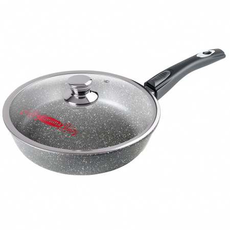 Сковорода с тефлоновым покрытием д24см "Графит", h6,5см, s0,4см, съемная ручка из термостойкого пластика, стеклянная крышка с пароотводом, подарочная упаковка (Россия) (арт. 056617)