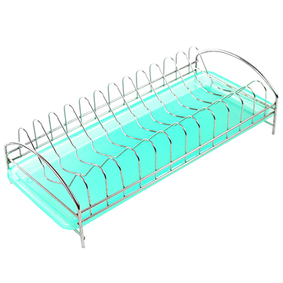 Сушилка проволочная для посуды хромированная настольная одноярусная 39х18,5х11см, с поддоном (Китай) (арт. 068696)