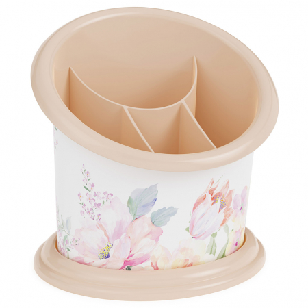 Подставка для столовых приборов пластмассовая "Цветочный блюз" 16х13х16см, 4-хсекционная (Россия) (арт. 060983)