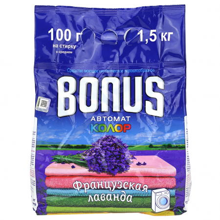 Стиральный порошок "Bonus Автомат Колор. Французская лаванда" 1500г, 21х4х3,1см (Беларусь) (арт. 068987)