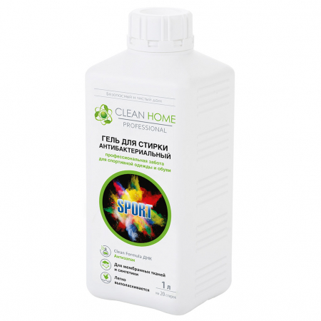CLEAN HOME Гель для стирки антибактериальный для спортивной одежды и обуви формула "Антизапах" 1л