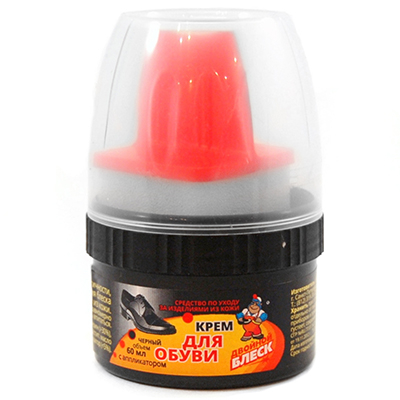 Крем для обуви 60мл банка с аппликатором "Двойной блеск" д5см, h8,5см, черный (Россия) (арт. 072825)