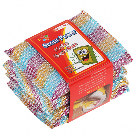 Губка для посуды 4 штуки 8,5х11,5х1,7см, поролон/ПВХ, металлизированная "Радуга" цветная, на картоне (Китай) (арт. 067057)