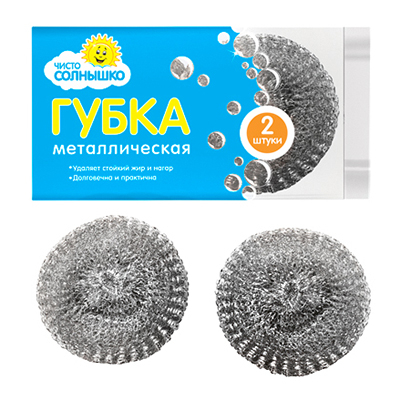 Губка металлическая "Чисто Солнышко" д8см, h1,5см, сталь, набор 2шт (Россия) (арт. 067831)